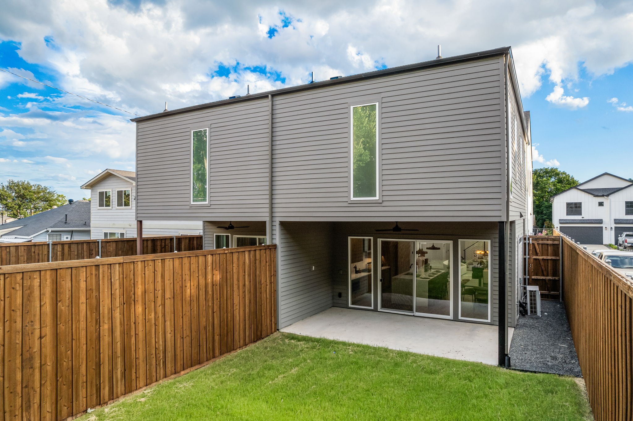Discover modern living in this beautifully designed single-family attached built by Conrad Homes. The open-concept layout features soaring two-story ceilings and a sleek fireplace, creating an inviting space for entertaining. The chef-inspired kitchen is outfitted with stainless steel appliances, a walk-in pantry, stained wood cabinetry, and an oversized waterfall island perfect for gathering. Upstairs, you'll find two generously sized guest bedrooms with a shared Jack-and-Jill bathroom, a full-size utility room, and abundant natural light throughout. The spacious primary suite offers a spa-like retreat with a soaking tub, walk-in shower, and an expansive walk-in closet. Enjoy a low-maintenance lifestyle with a private backyard enclosed by an 8-foot board-on-board fence and a covered patio, ideal for relaxing or entertaining. Located in the rapidly developing Mount Auburn neighborhood just minutes from Downtown Dallas and White Rock Lake, this home offers the ultimate in convenience and style--perfect for those seeking a lock-and-leave lifestyle.