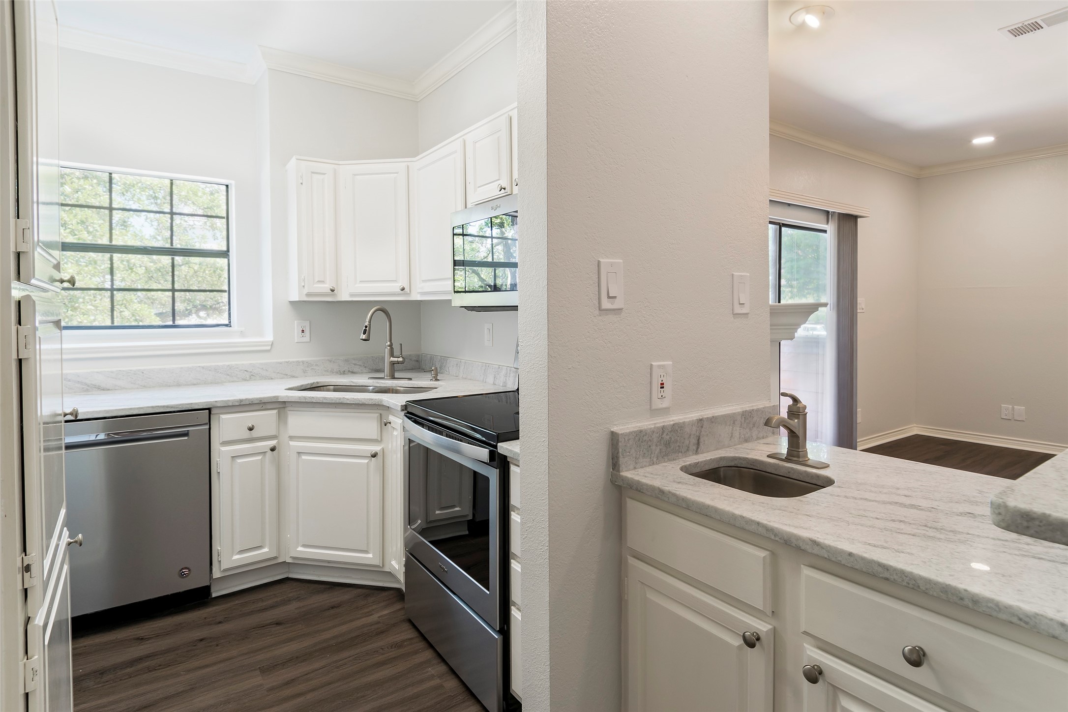 Fabulously updated condo within walking distance to SMU and Hillcrest Avenue! First floor is an open layout with wet bar, fireplace, and access to a shaded balcony with exterior storage. Kitchen features white granite counters with stainless steel appliances. Two bedrooms on the second floor share a full bath with two large closets. Additional full bathroom on first floor with shower stall. Refrigerator, washer & dryer are included. Other features include: two reserved parking spots in underground garage, community pool, and gated entrance. Tenants responsible for electricity and internet -- all other utilities included. Hurry -- this one won't last!