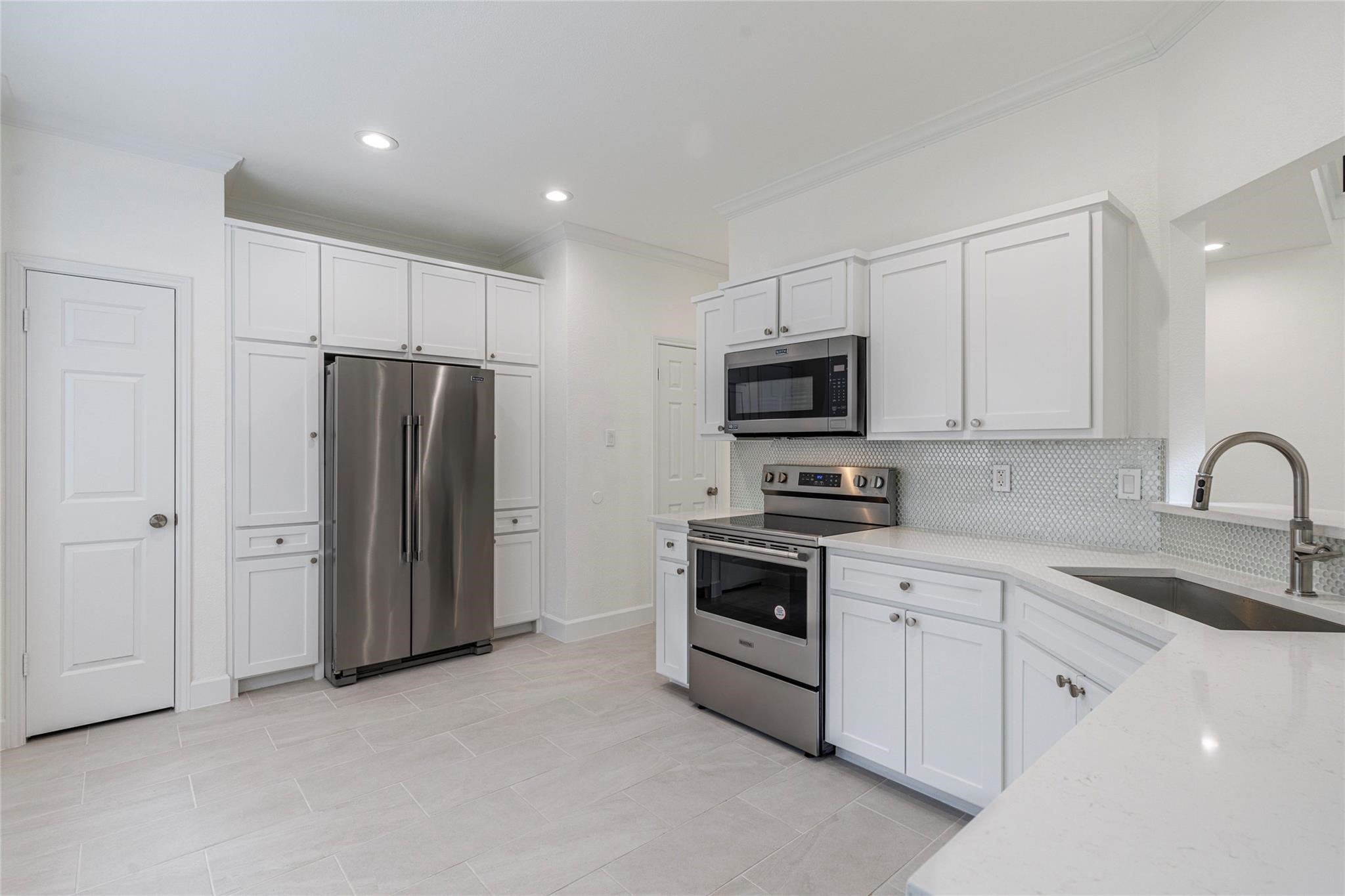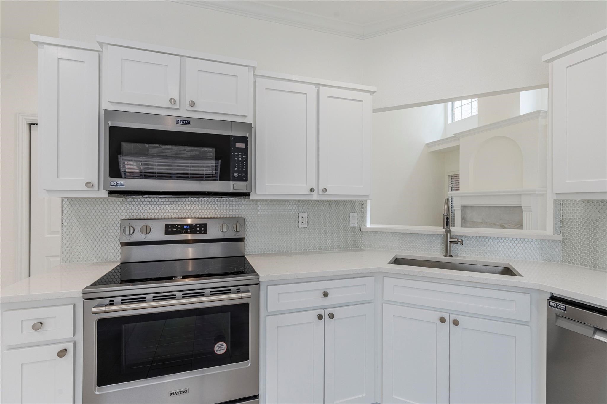 Experience luxury living in this beautifully updated home where everything is new and move-in ready. From the moment you step inside, a grand two-story foyer welcomes you into a bright, open floor plan featuring a dramatic wood-burning fireplace as the centerpiece of the spacious living area. The living, dining, and kitchen spaces flow seamlessly together, creating the perfect environment for entertaining and everyday comfort. The stunning kitchen features quartz countertops, a modern backsplash, an abundance of cabinetry, and all new soft-close cabinets, drawers, and stainless-steel appliances. A stylish half bath with an LED lighted touch mirror adds a touch of modern sophistication to the main level--mirrors you'll also enjoy in both the primary and guest bathrooms upstairs. Upstairs, the generous primary suite offers a luxurious retreat with dual vanities and an oversized shower in the newly updated ensuite. Across the airy skybridge--overlooking the living area below--you'll find two additional bedrooms, each with walk-in closets and a shared bathroom. Step outside to a charming private patio, perfect for relaxing or dining al fresco. Offering a fresh, modern, and truly move-in-ready space. Don't miss the opportunity to lease this exceptional home in the desirable Arbor Glen community. Pets considered on a case-by-case basis.
